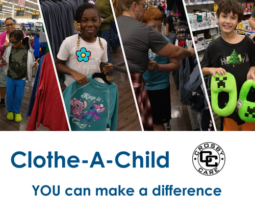 Clothe-A-Child is a program created to help the less fortunate in our community enjoy the blessings many take for granted at Christmastime. Participant families are chosen In partnership with local school from all walks of life: low-income families trying to make ends meet, parents pursuing a college education, grandparents who have custody of their grandchildren - basically, any set of circumstances that create financial hardship for the family. Each December Clothe-A-Child volunteers pair up with participant families to shop at local department stores armed with big smiles and warm hearts.